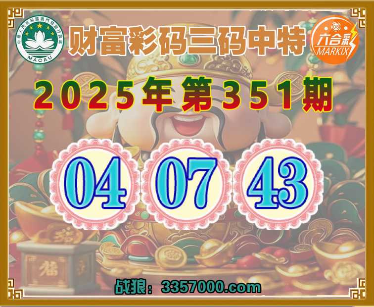 351期: 🌲『财富彩码』 🌲三码中特🌲【04.07.43】开:04准上榜高手